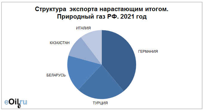 Наибольшие поставки осуществляются в Германию, объем 13.16 млрд. куб. м. За прошлый 2020 год поставки в данную страну составляли 35.67 млрд. куб. м.