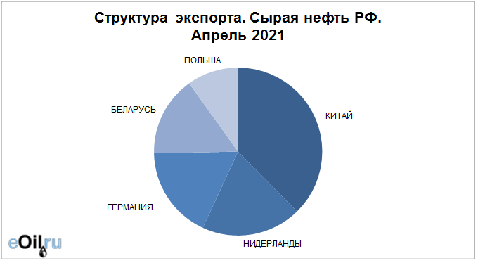 Структура экспорта сырой нефти из России за апрель 2021 года