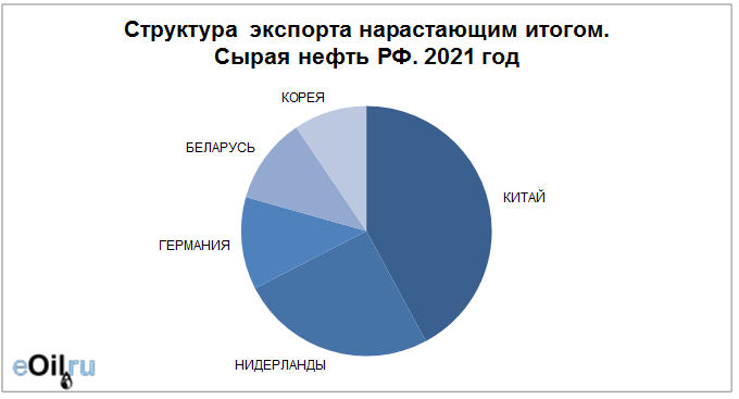 Структура экспорта сырой нефти из России нарастающим итогом по годам