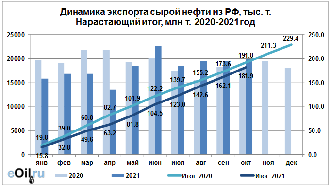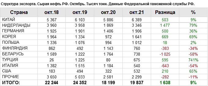 Росстат. Экспорт сырой нефти из России на октябрь 2021