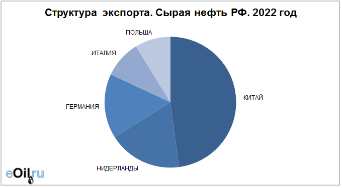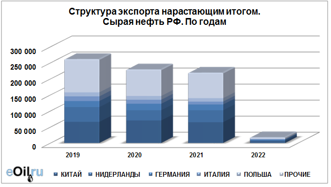 Структура экспорта сырой нефти из России нарастающим итогом по годам