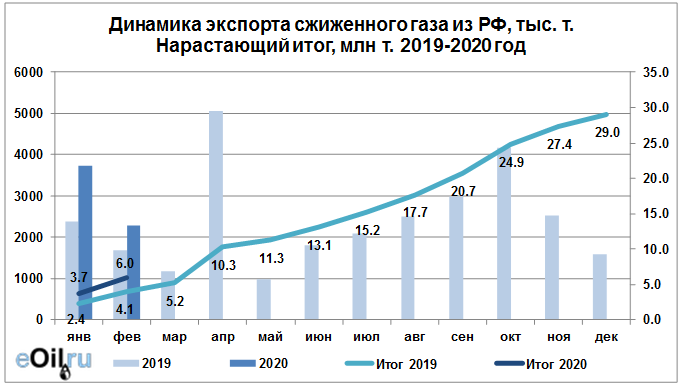 В 2020 году объем поставок сжиженного газа на экспорт достиг 6008.44 тыс. тонн. Данный объем на текущий момент составляет 21% от объема прошлого 2019 года.