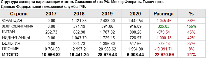 Росстат. Экспорт сжиженного газа из России на февраль 2020