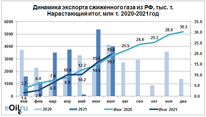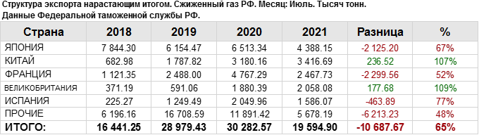 Росстат. Экспорт сжиженного газа из России на июль 2021