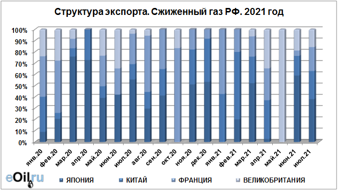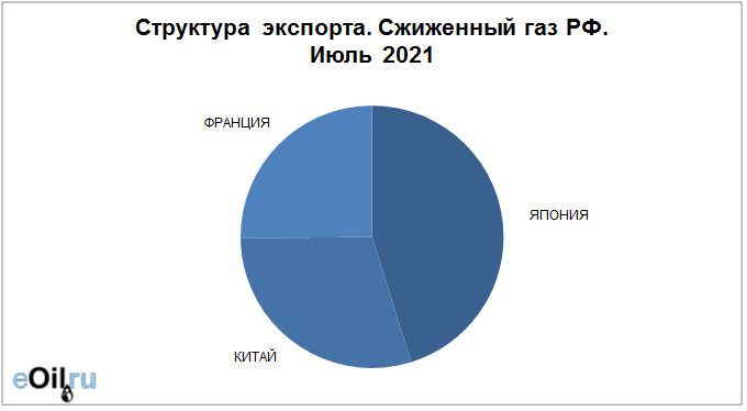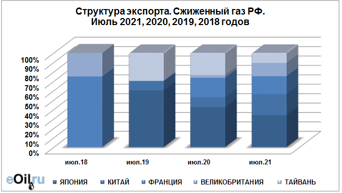 Структура экспорта сжиженного газа из России с января 2021 по июль 2021