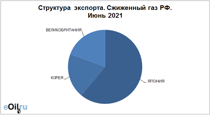 Структура экспорта сжиженного газа из России за июнь 2021 года