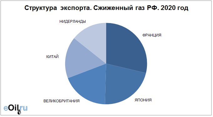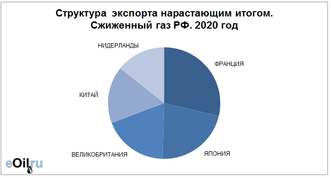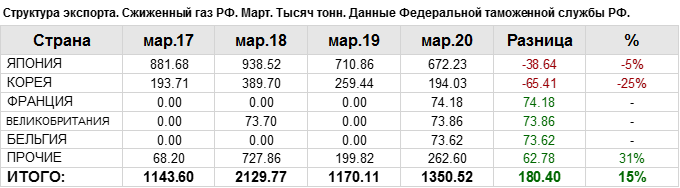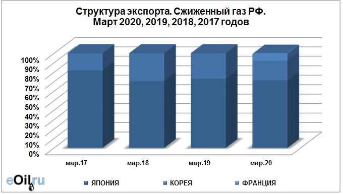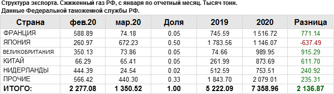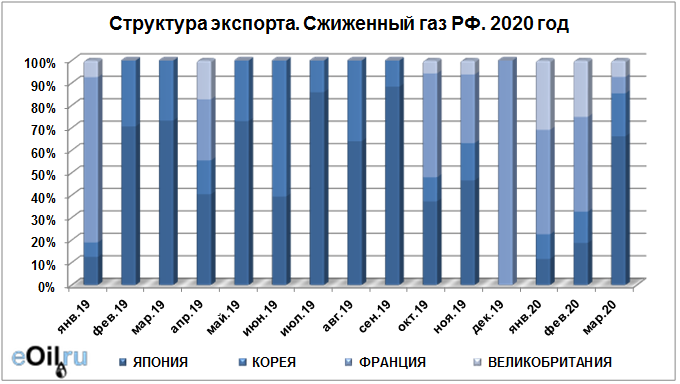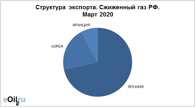 Структура экспорта сжиженного газа из России с января 2020 по март 2020