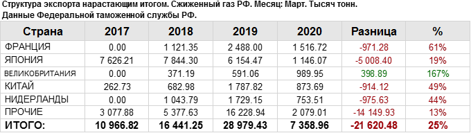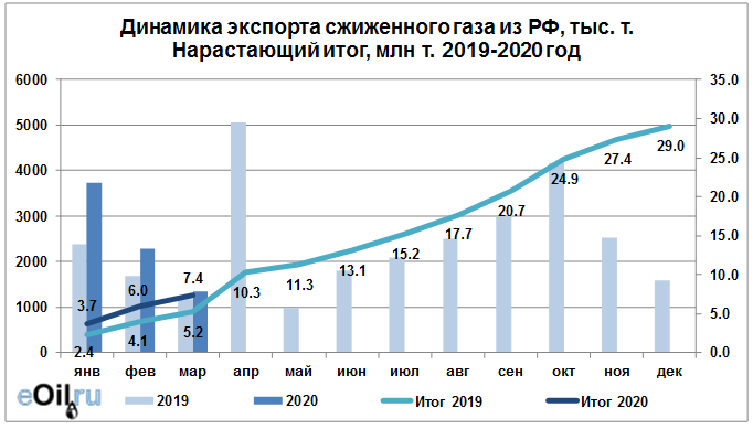 Росстат. Экспорт сжиженного газа из России на март 2020