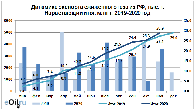 В 2020 году объем поставок сжиженного газа на экспорт достиг 28893.92 тыс. тонн. Данный объем на текущий момент составляет 100% от объема прошлого 2019 года.