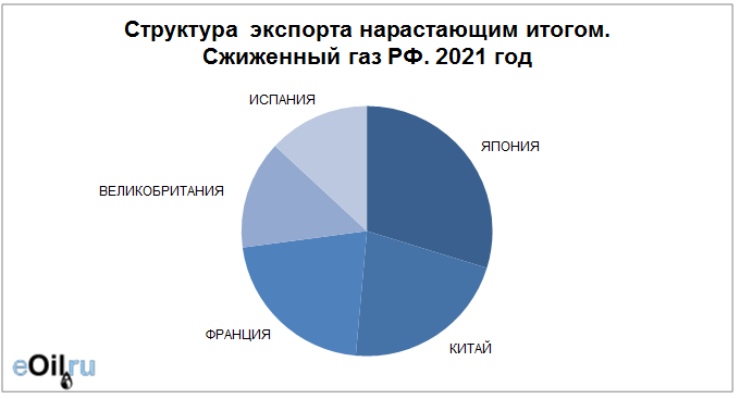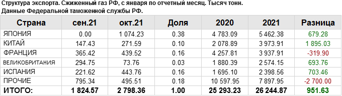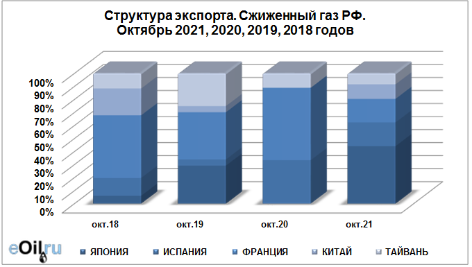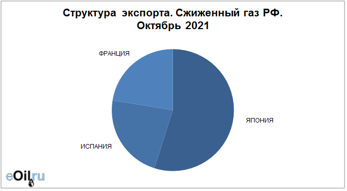 Структура экспорта сжиженного газа из России с января 2021 по октябрь 2021