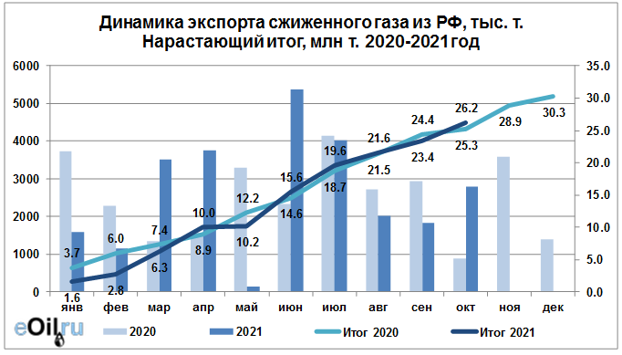 Росстат. Экспорт сжиженного газа из России на октябрь 2021