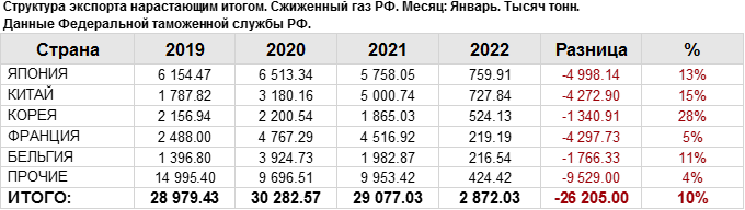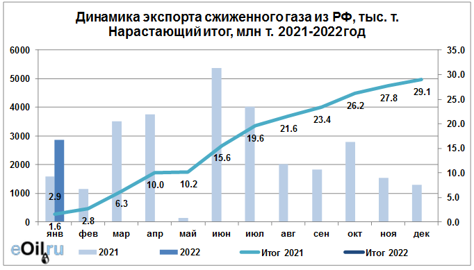 Росстат. Экспорт сжиженного газа из России на январь 2022