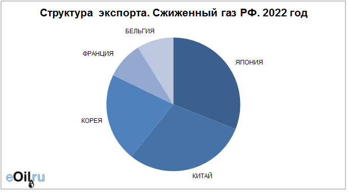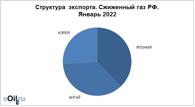Структура экспорта сжиженного газа из России за январь 2022