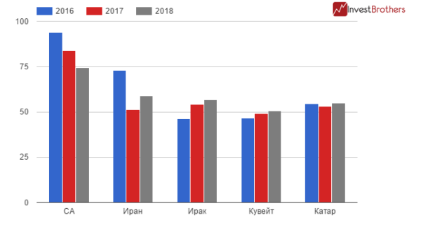 Однако не стоит зацикливаться на себестоимости добычи, так как бюджеты стран-экспортеров нефти составлены с учетом стоимости сырья с куда более дорогими ценами. Для баланса бюджета в Саудовской Аравии котировкам на “черное золото” необходимо подняться до 83,8 долларов за бочку. В Иране и Ираке к 51,3 и 54,3 долларам, а для самых богатых стран Ближнего Востока – Катара и Кувейта – 52,9 и 49,1 долларов. Таким образом, в текущей ситуации лишь Саудовская Аравия живет не по средствам.