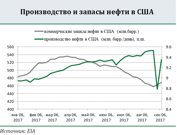 По данным EIA, коммерческие запасы нефти в США увеличились за неделю на 5,9 млн. барр. Запасы бензина сократились на 8,4 млн. барр. Производство нефти выросло до 9,4 млн. барр./день, что на 6,5% выше, чем неделей ранее.