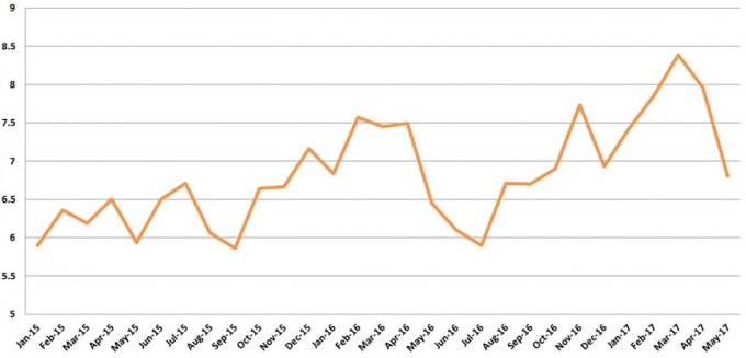 В этом месяце в Азию было доставлено лишь 2 миллиона баррелей нефти Forties из North Sea. При этом, год назад в июне было доставлено 6 миллионов баррелей, а в мае — 10 миллионов.