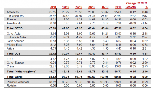 Вместе с тем, в регионах ОЭСР Europe и ОЭСР Asia Pacific темпы роста спроса сократятся в наибольшей степени. Это обусловлено снижением промышленной активности.