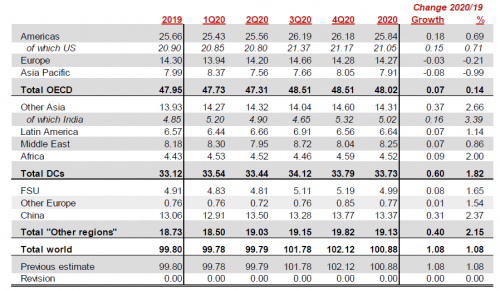 Прогноз по спросу в странах ОЭСР остался без изменений по сравнению с предшествующим отчетом.