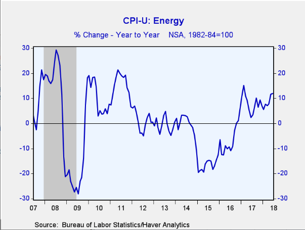 График 3. CPI для всех городских потребителей: энергоносители. Процентное изменение год к году. Источник: Бюро статистики труда США/ Haver Analytics
