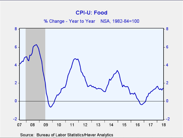 График 4. CPI для всех городских потребителей: продукты питания. Процентное изменение год к году. Источник: Бюро статистики труда США/ Haver Analytics