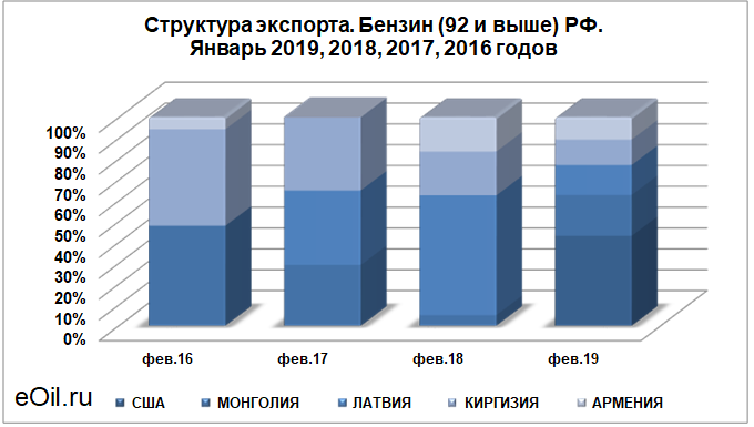 Структура экспорта бензина (92 и выше) из России. Февраль 2019