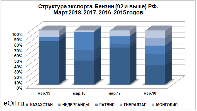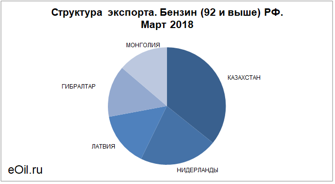 Структура экспорта бензина (92 и выше) из России. Март 2018
