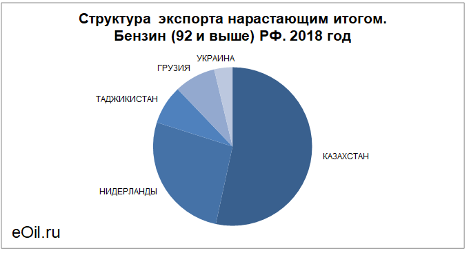 В 2018 году объем поставок бензина (92 и выше) на экспорт достиг 466.4 тыс. тонн. Данный объем на текущий момент составляет 16% от объема прошлого 2017 года.