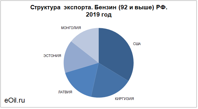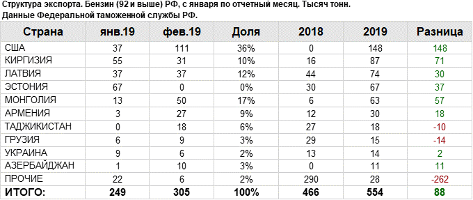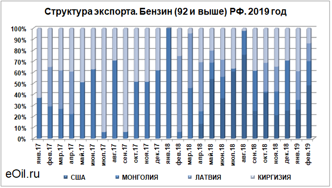 Структура экспорта бензина (92 и выше) из России с января 2019 по февраль 2019