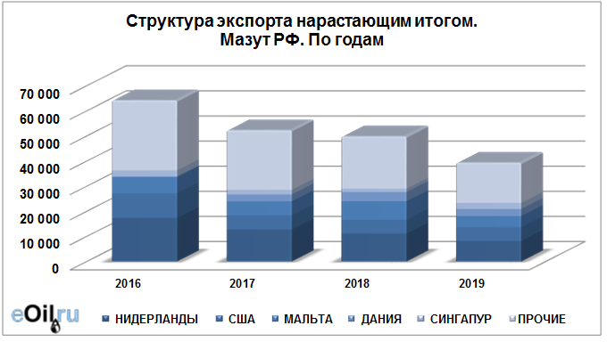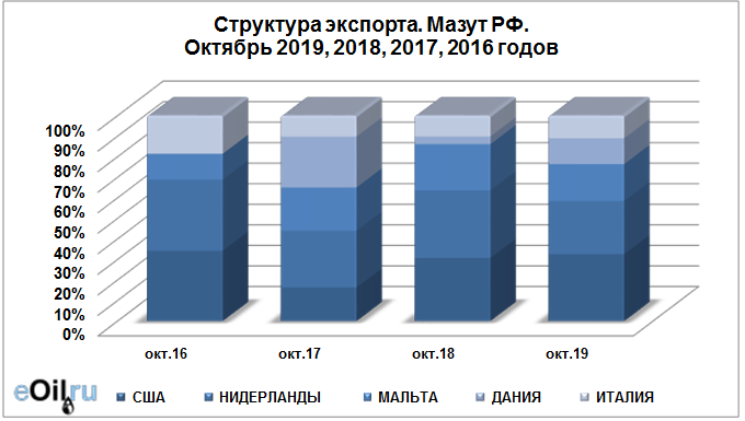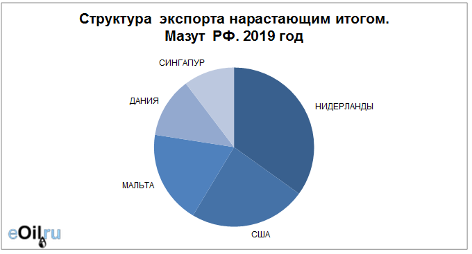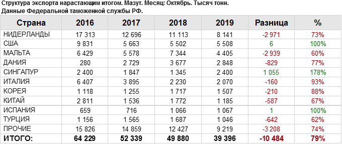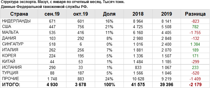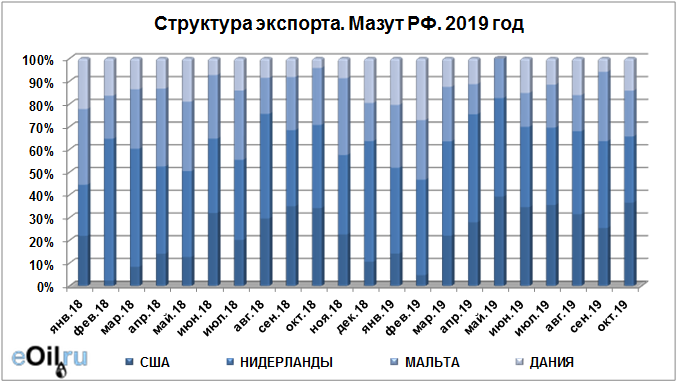 Структура экспорта мазута из России. Данные на октябрь 2019