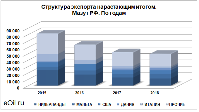 В 2018 году объем поставок мазута на экспорт достиг 49879.74 тыс. тонн. Данный объем на текущий момент составляет 95% от объема прошлого 2017 года.