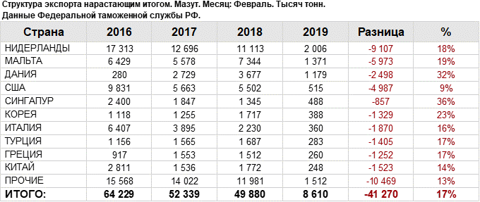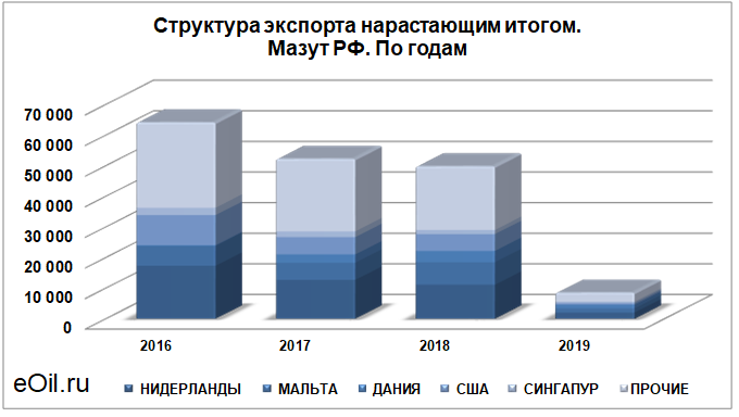 В 2019 году объем поставок мазута на экспорт достиг 8609.74 тыс. тонн. Данный объем на текущий момент составляет 17% от объема прошлого 2018 года.