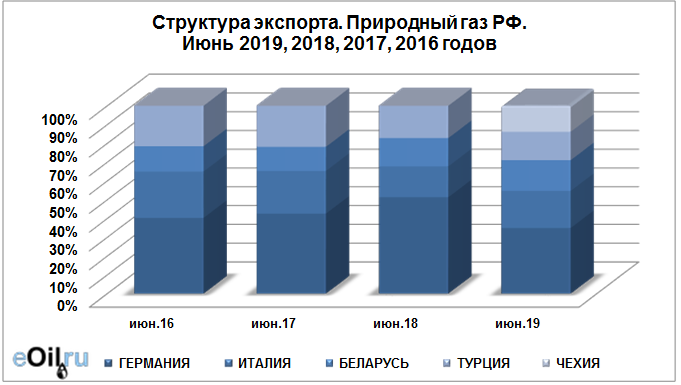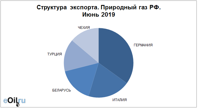 Структура экспорта природного газа из России. Данные на июнь 2019