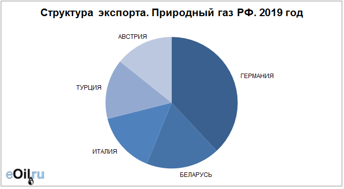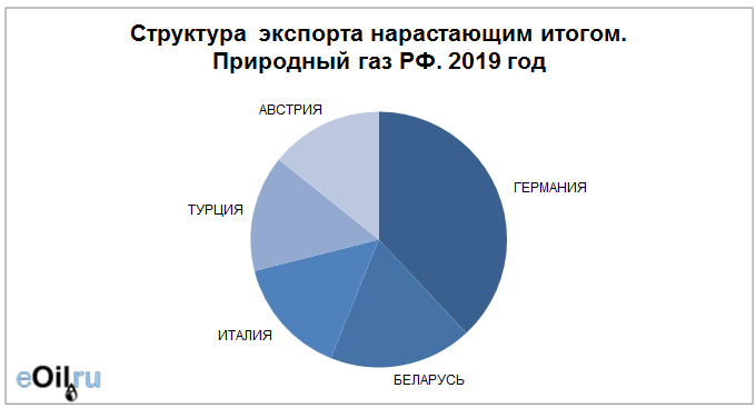 Наибольшие поставки осуществляются в Германию, объем 30.52 млрд. куб. м. За прошлый 2018 год поставки в данную страну составляли 51.93 млрд. куб. м.