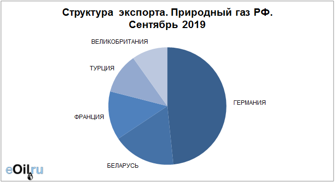 Структура экспорта природного газа из России за сентябрь 2019 года
