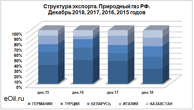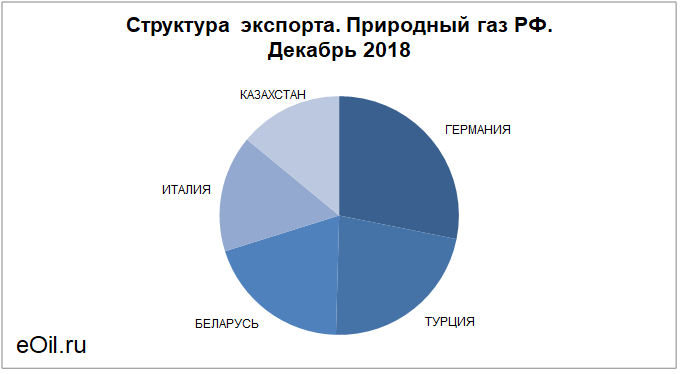 В декабре 2018 года общий объем экспорта природного газа составил: 18.37 млрд. куб. м.