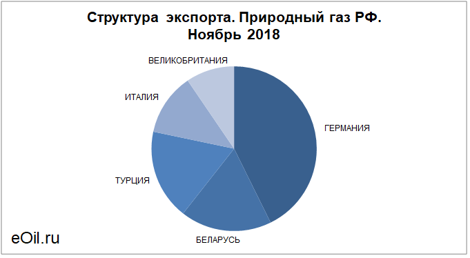 В ноябре 2018 года общий объем экспорта природного газа составил: 18.66 млрд. куб. м.