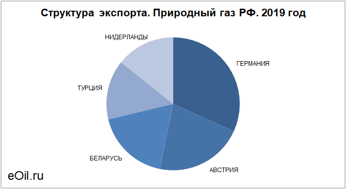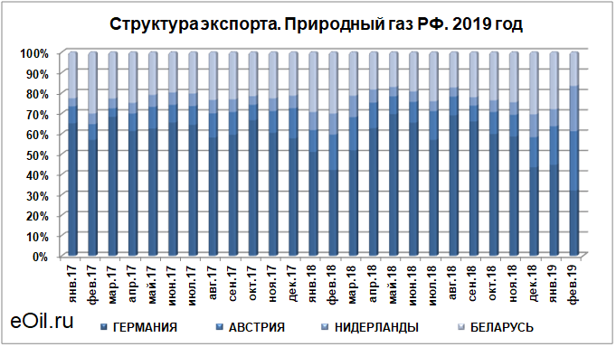 Структура экспорта природного газа из России с января 2019 по февраль 2019
