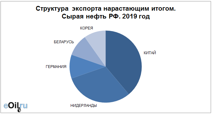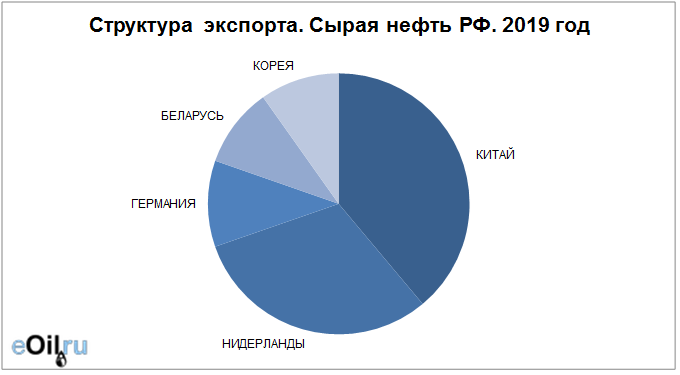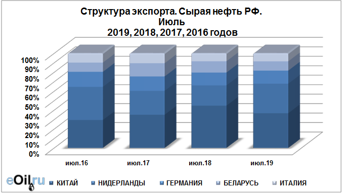 Структура экспорта сырой нефти из России. Данные на июль 2019