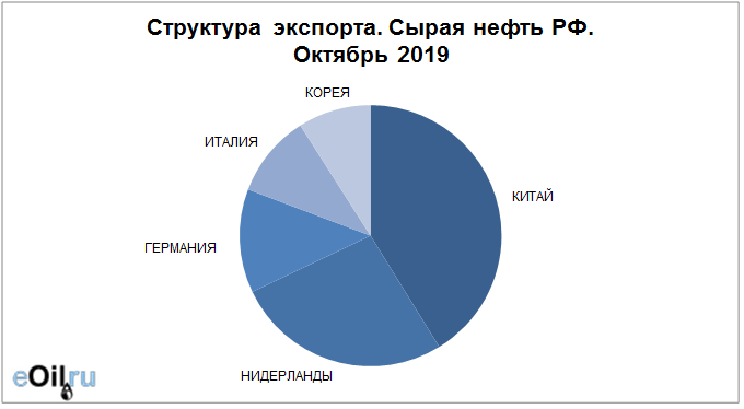 Структура экспорта сырой нефти из России за октябрь 2019 года