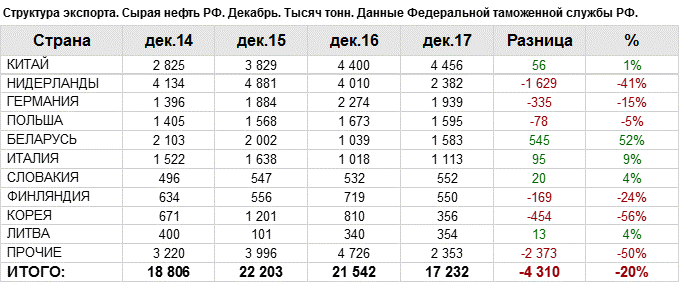 Читайте также: Структура экспорта сырой нефти из России с января 2017 по декабрь 2017