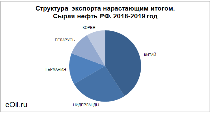 Структура экспорта сырой нефти из России нарастающим итогом по годам