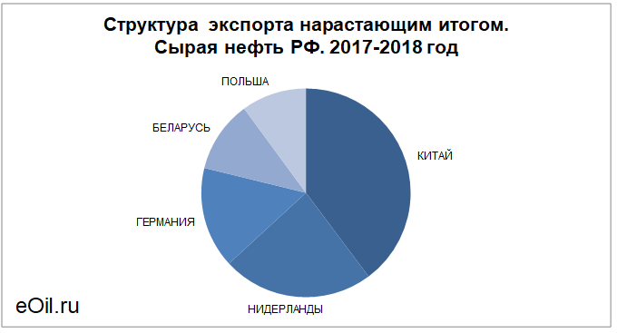 Структура экспорта сырой нефти из России нарастающим итогом по годам