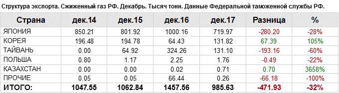 Читайте также: Структура экспорта сжиженного газа из России с января 2017 по декабрь 2017