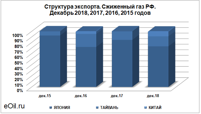 Структура экспорта сжиженного газа из России. Декабрь 2018