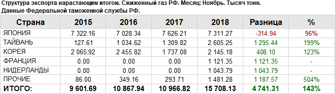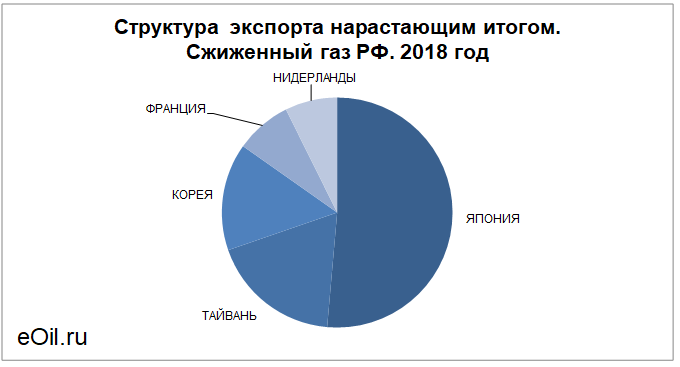 Структура экспорта сжиженного газа из России с января 2018 по ноябрь 2018
