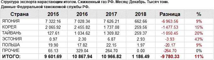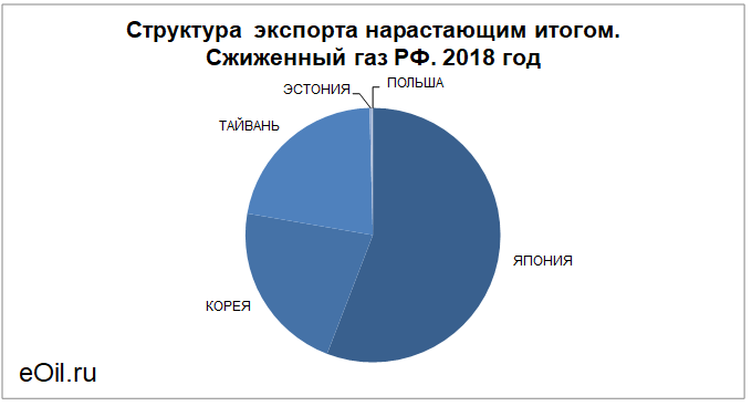 Структура экспорта сжиженного газа из России с декабря 2017 по январь 2018