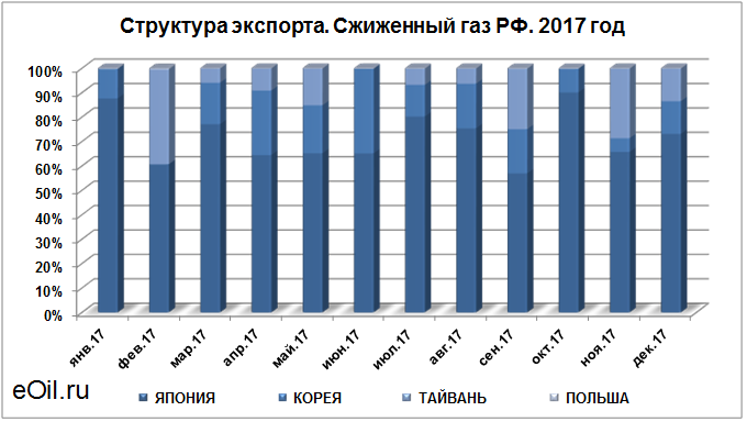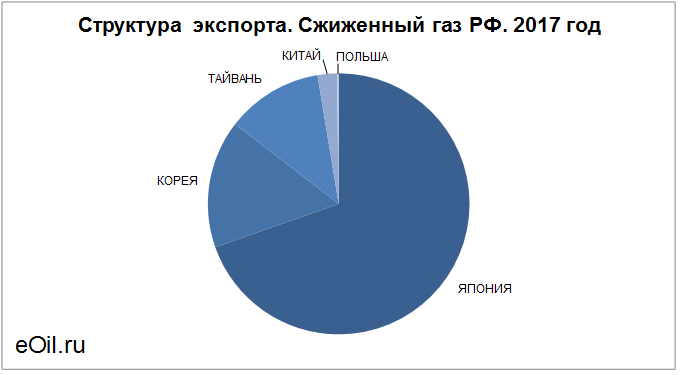 Структура экспорта сжиженного газа из России с января 2017 по декабрь 2017
