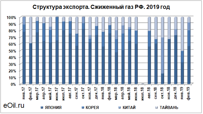 Структура экспорта сжиженного газа из России с января 2019 по февраль 2019