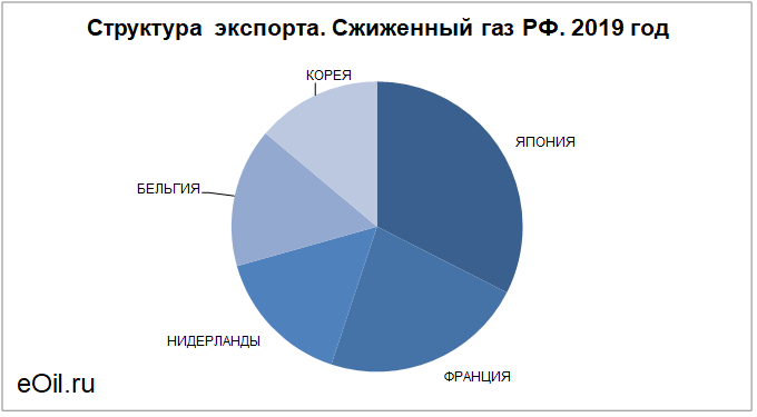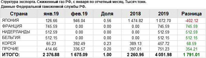 Структура экспорта сжиженного газа из России с января 2019 по февраль 2019