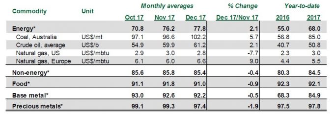 В декабре средняя цена на энергию увеличилась. Стоимость нефти и угля возросла, в то время как стоимость природного газа продемонстрировала смешанные тенденции.